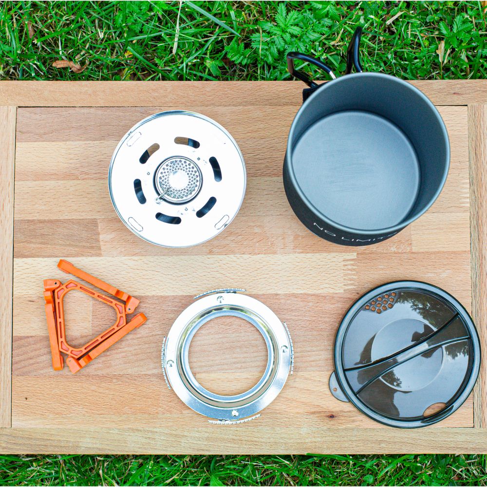 Система приготовления пищи для туризма, кемпинга и активного отдыха.Система приготовления пищи состоит из 4 элементов: