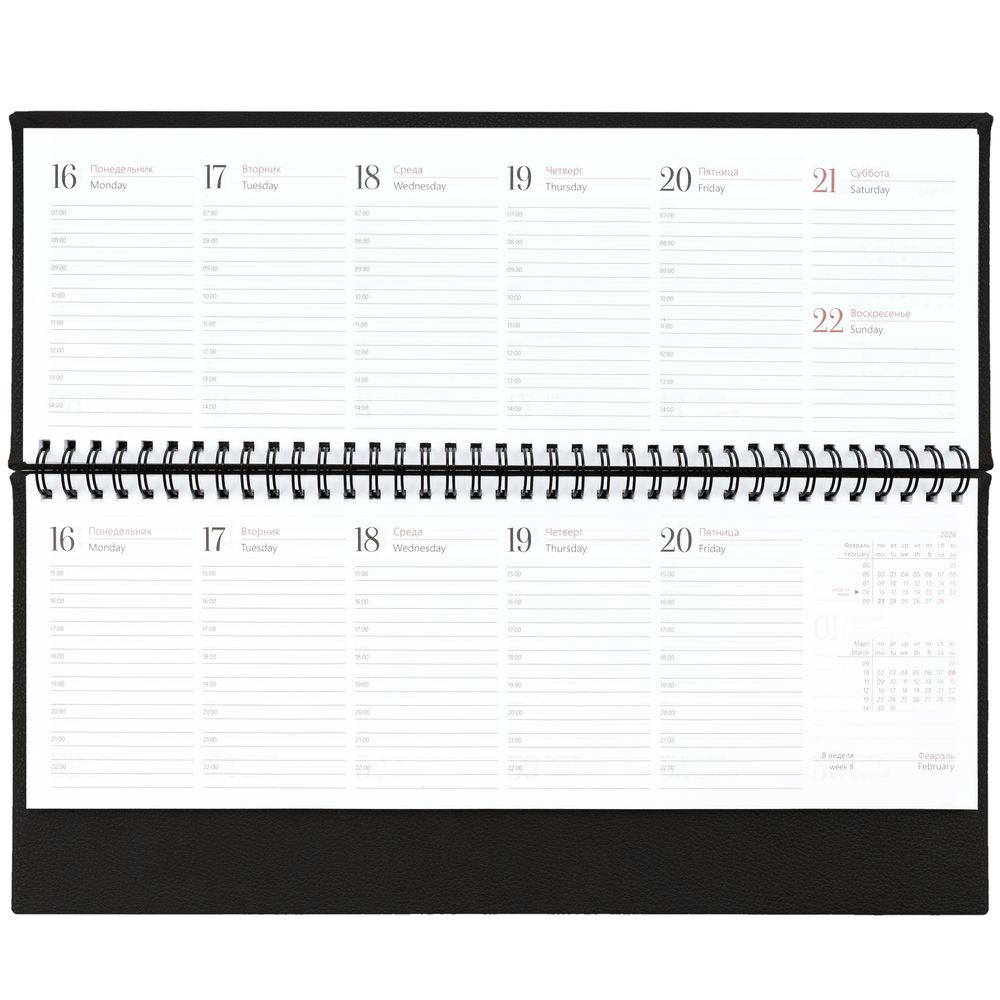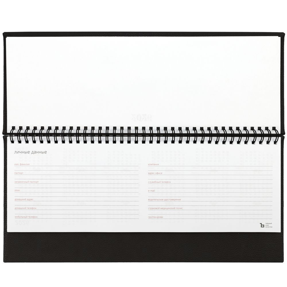 Планинг с твердой обложкой с поролоном, выполнен из материала La Fite, черный АА.