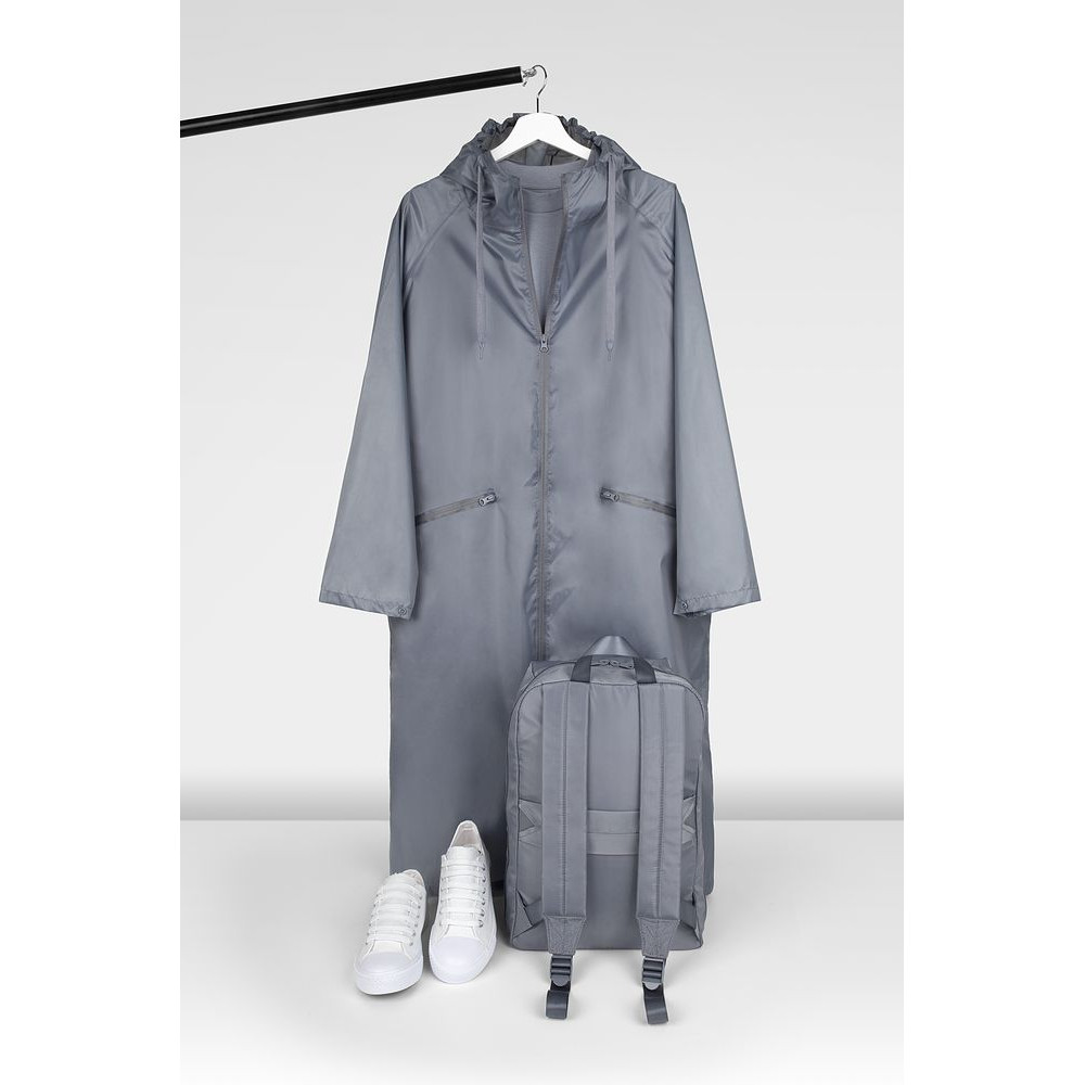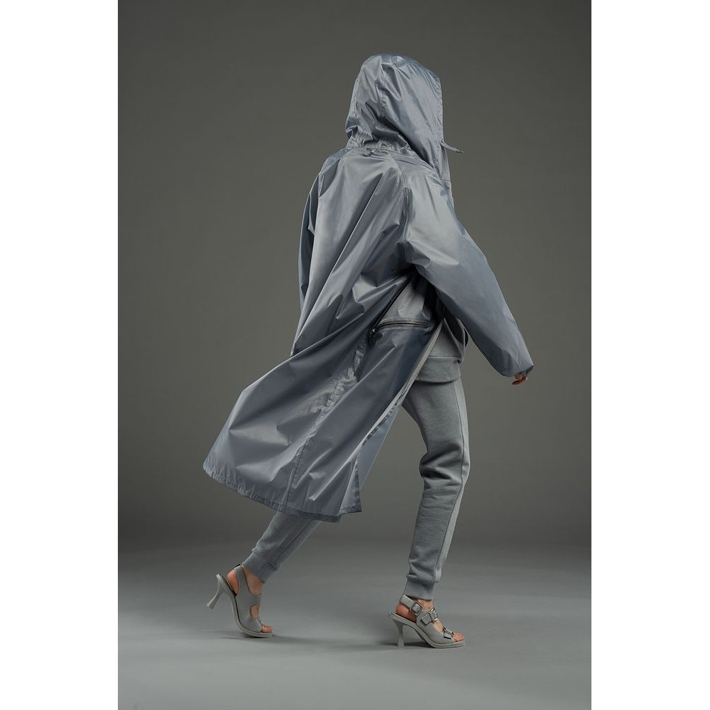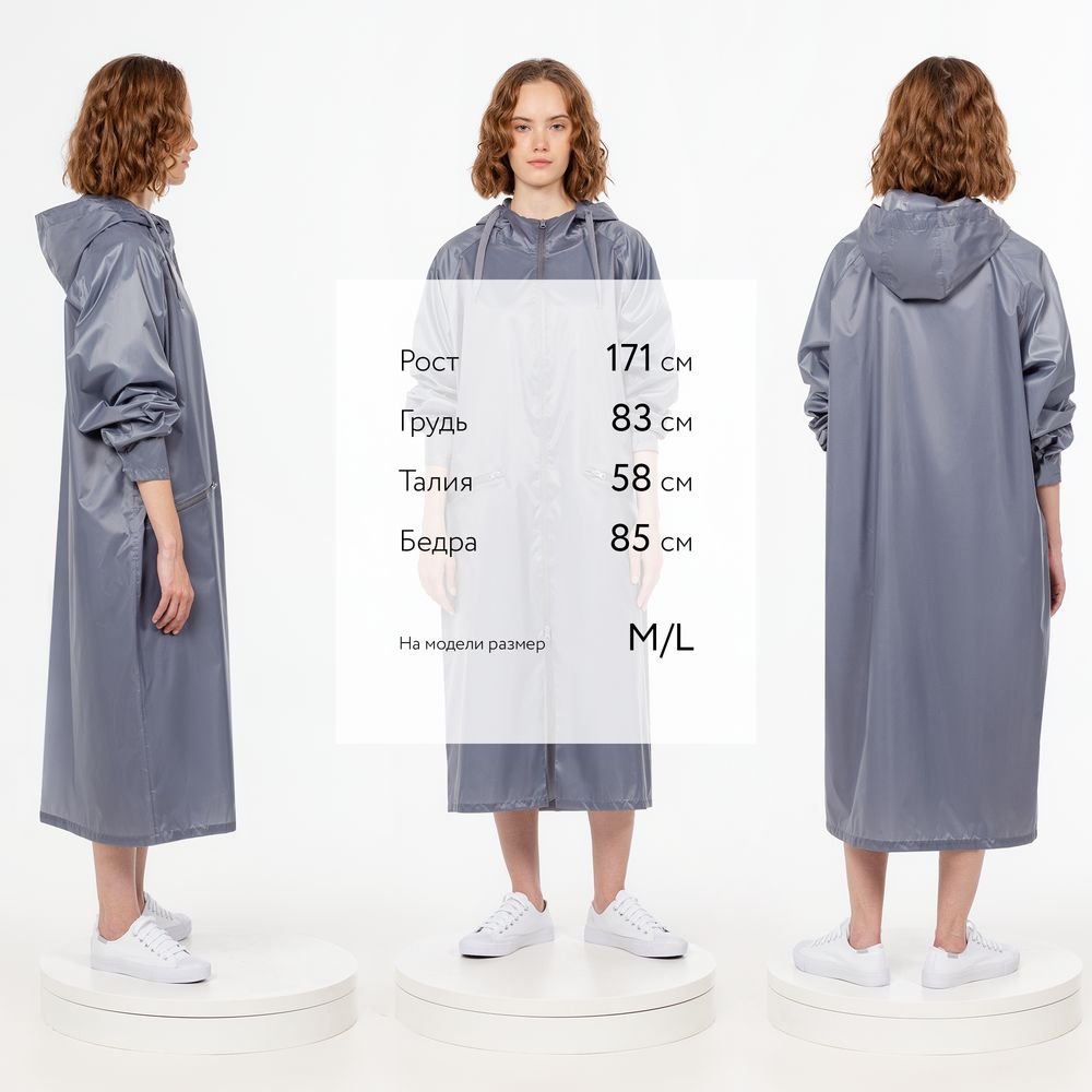 Плащ-дождевик на молнии с капюшоном из ткани таффета с полиуретановой пропиткой для защиты от сильного дождя.