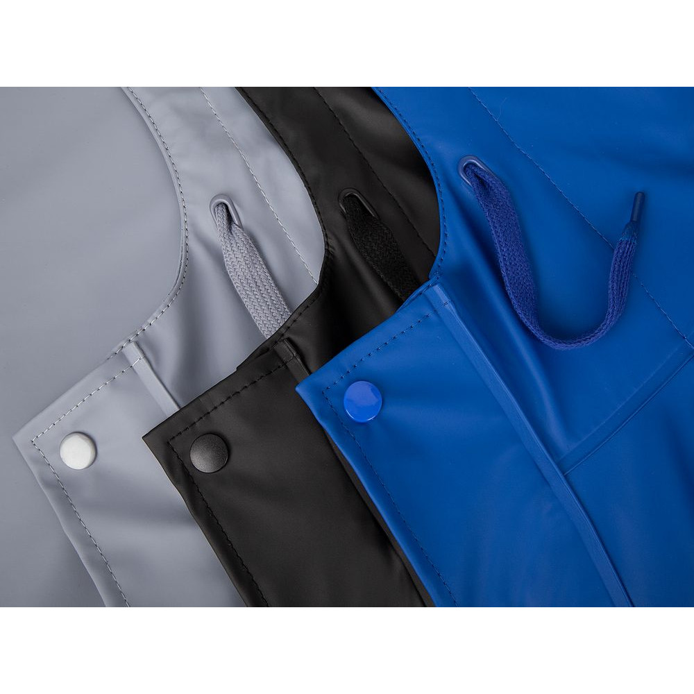 Плащ-дождевик с капюшоном из полиэстера с полиуретановым непромокаемым покрытием.