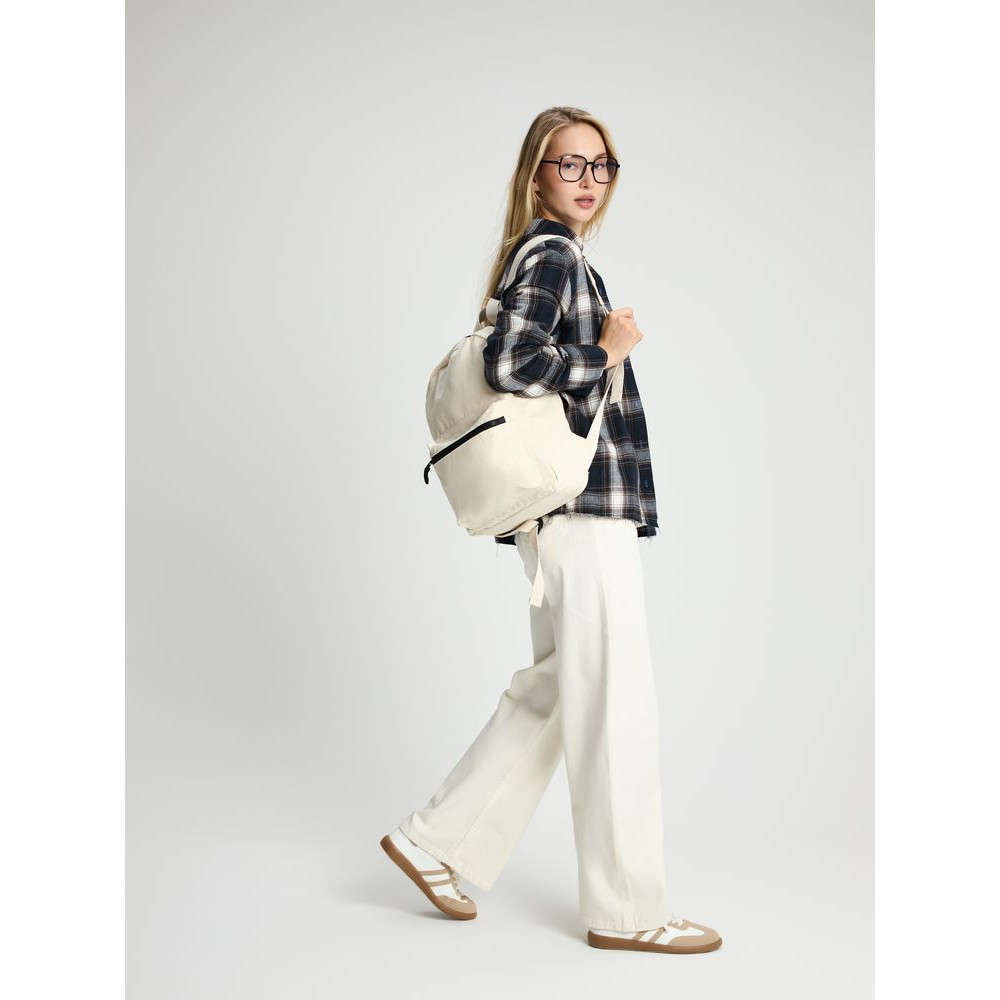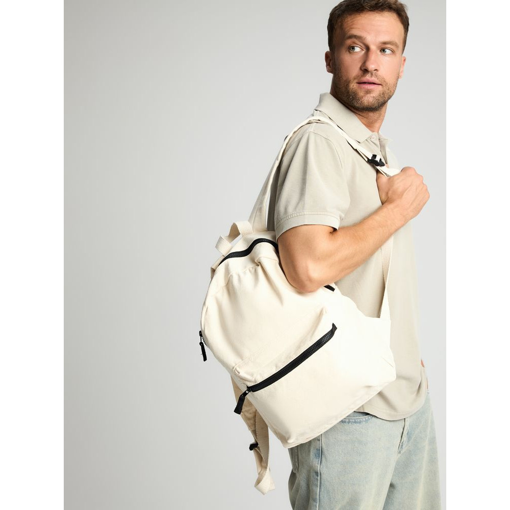 Легкий рюкзак в экостиле — из плотного неокрашенного хлопка с контрастными деталями.