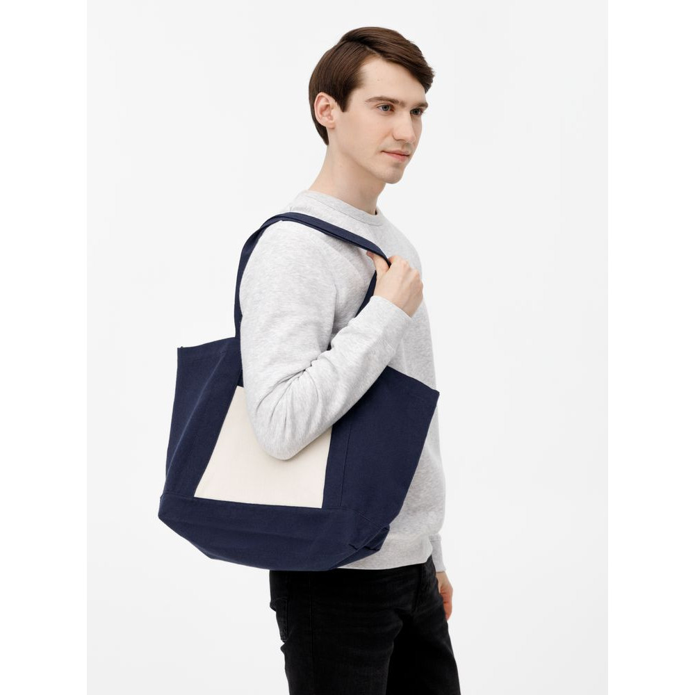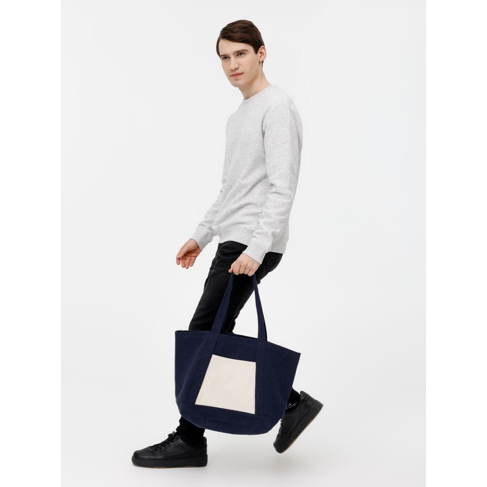 Эта многофункциональная холщовая сумка выдерживает нагрузку до 12 кг, что делает ее идеальным выбором для покупок, прогулок или похода в спортзал. Плотная ткань хорошо держит форму, внутренний и наружный карманы помогут удобно организовать пространство, а прочные швы, обработанные оверлоком, обеспечат долгий срок службы. Шопер на 40% выполнен из переработанного хлопка — дополнительный аргумент для тех, кто заботится о защите природы и экологичном использовании ресурсов.