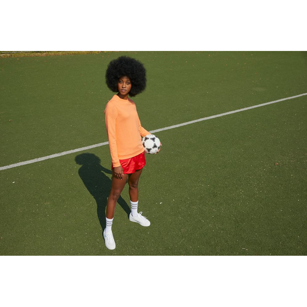 Современный универсальный женский свитшот с круглым вырезом, изготовленный из мягкой ткани, обеспечивающей идеальную поверхность для печати.
