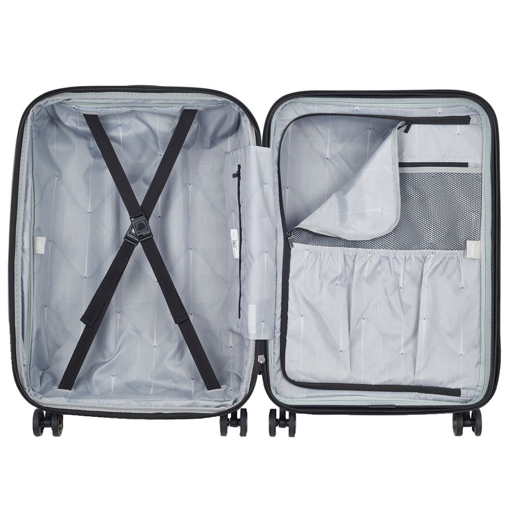 • Чемодан с 2 отделениями: одно из них с фиксирующими ремнями, второе — с разделителем и карманом-органайзером на молнии
