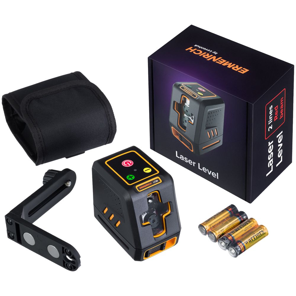 В комплект входят: лазерный уровень, чехол, L-образный кронштейн.