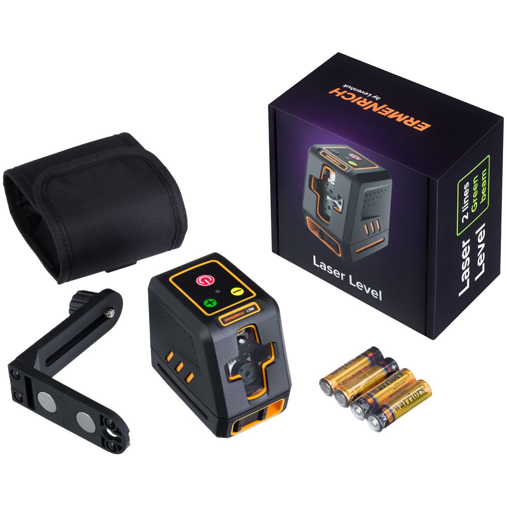 В комплект входят: лазерный уровень, чехол, L-образный кронштейн.