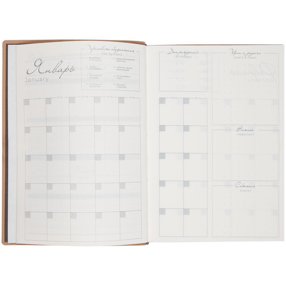 Ежедневник с гибкой обложкой из искусственной кожи Anaconda, дополнен капталом и ляссе в цвет ежедневника.