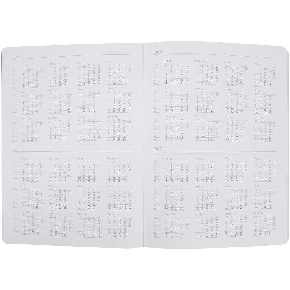 Еженедельник в твердой обложке выполнен из материала Vintage, серый СС, дополнен резинкой, петлей для ручки и ляссе серого цвета.