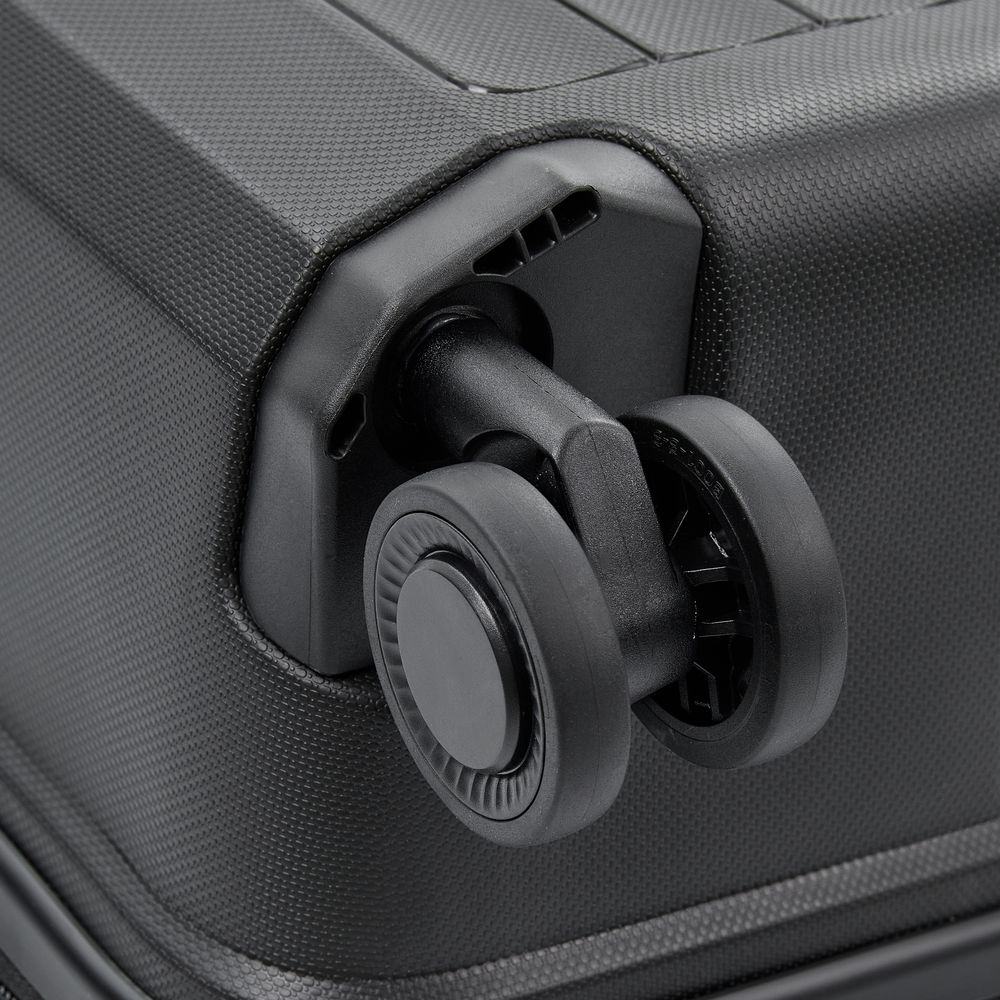 • Блок крепления колеса встроен в корпус чемодана, что обеспечивает лучшую устойчивость к внешнему воздействию