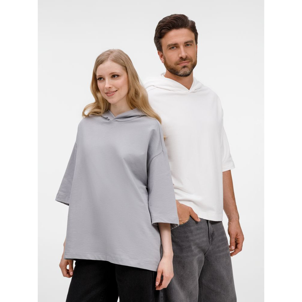Футболка оверсайз унисекс с капюшоном Neofit, молочно-белая