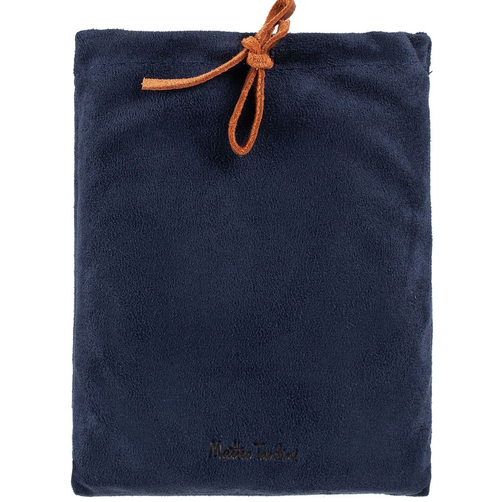 Чтобы передать этот удивительный контраст, для изделий Kalsa Palermo была выбрана гладкая натуральная кожа: глубокого синего цвета снаружи и светло-коричневого оттенка внутри. Оформленные в едином стиле, они легко собираются в подарочные наборы.