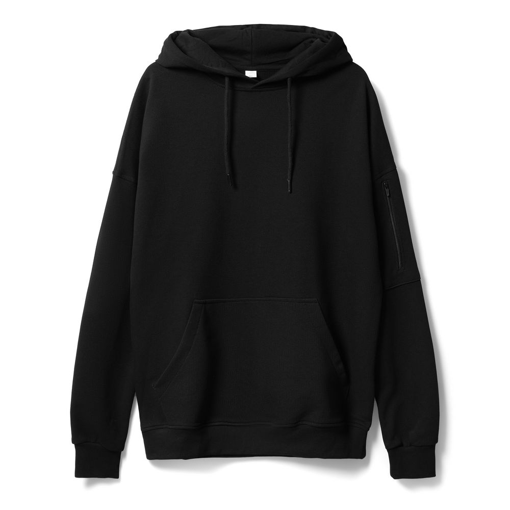 Худи унисекс свободной посадки со спущенным плечом из трикотажного полотна пике.