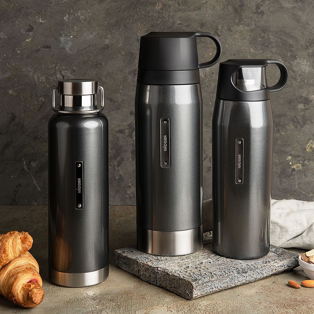 • Двойные стенки из нержавеющей стали. Благодаря вакуумной теплоизоляции напитки остаются горячими или холодными в течение 24 часов