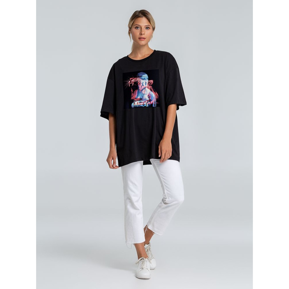 Плох тот горностай, что не мечтает стать тигром! Оверсайз футболка о том, что мечтать надо по-крупному!Футболка унисекс со спущенным плечом и круглым вырезом, отделанным резинкой.
