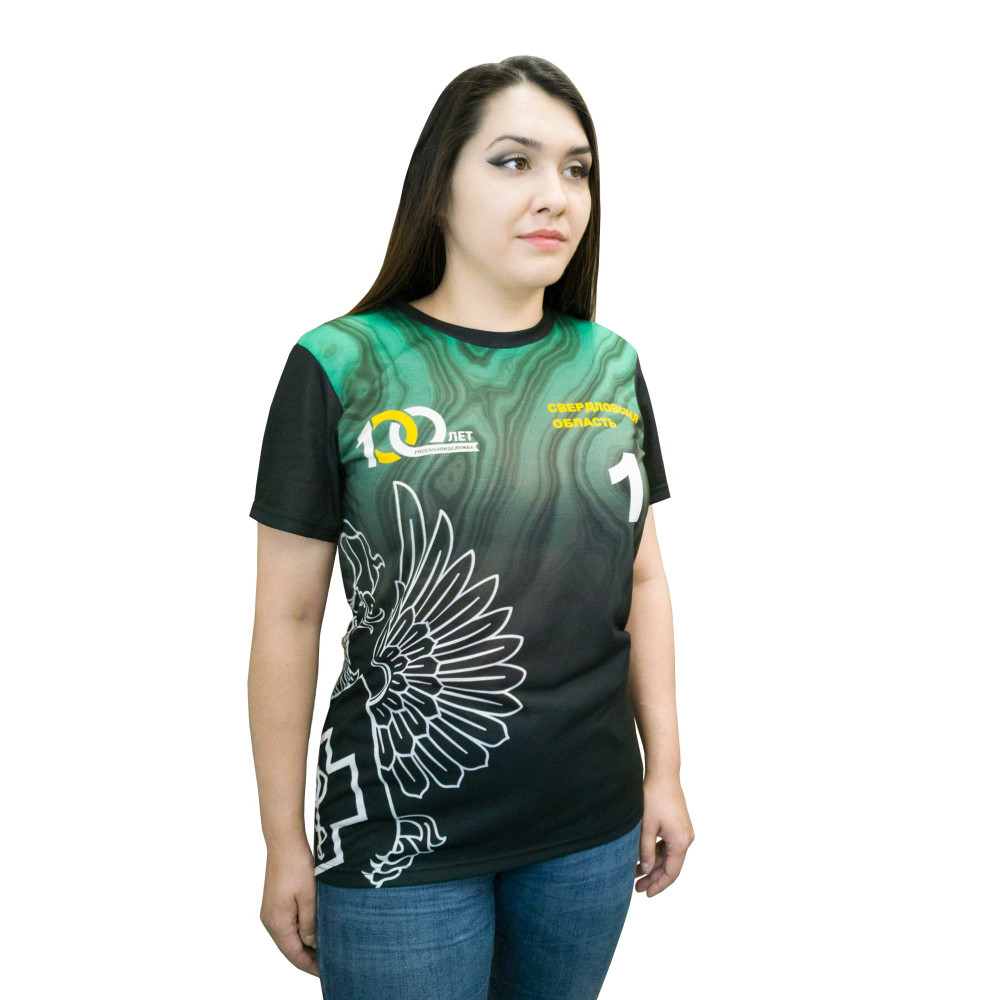 Параметры: Футболка с полной запечаткой женская, модель с коротким рукавом, материал бифлес