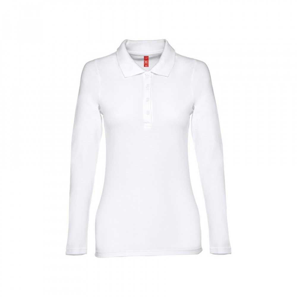 Женская рубашка-поло с длинным рукавом из хлопковой ткани-пике.Полотно футболки упругое и гладкоеблагодаря обработке ферментами "enzyme wash" исохраняет форму при стирке.Модель приталенного илуэта. Благодаря манжете из риба 1х1 рукав смотрится очень аккуратно. Воротник также выполнен из риба 1х1, внутри ворота - укрепляющая тесьма по горловине. Планка с 3 пуговицами в цвет основной ткани изделия. Запасная пуговица на ярлыке во внутреннем боковом шве.