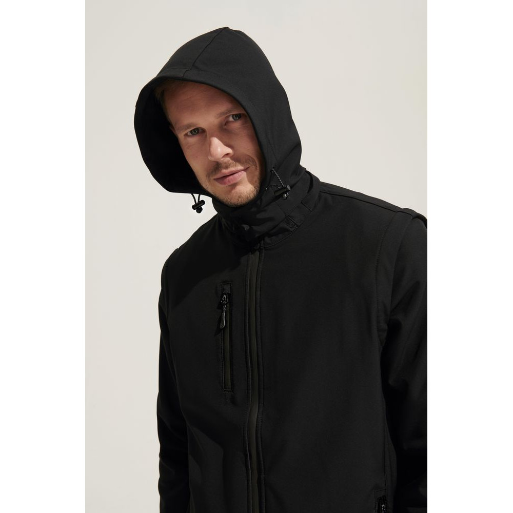Влагоустойчивая и ветрозащитная куртка-трансформер из материала Softshell, выполненного из переработанного полиэстера. Отстегивающиеся рукава и капюшон позволяют выбрать ту конфигурацию, которая больше всего соответствует погоде за окном.