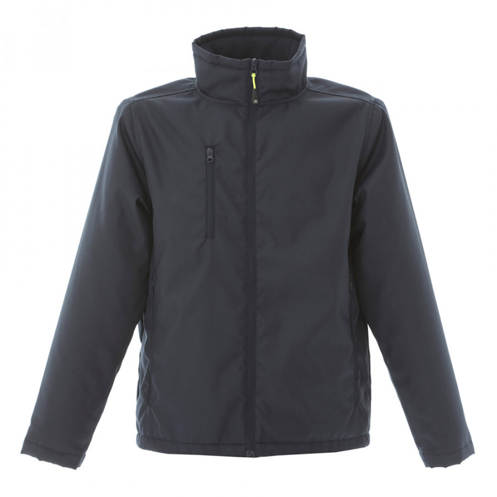 Основная ткань: цвет, близкий к Pantone 5395 U, подкладка: цвет, близкий к Pantone 539 U Водоотталкивающая куртка с флисовой подкладкой. Один нагрудный карман на молнии. Два боковых кармана на молнии. Внутренний карман на липучке. Утягивающий шнурок по низу куртки. Регулируемые манжеты на липучке.