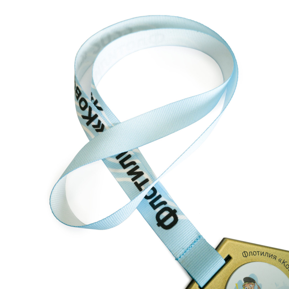 Лента репсовая шириной 15 или 20 мм. Матовый материал, структура «рубчик». На ленту методом сублимации наносится любое изображение по вашему дизайну. Возможна полная запечатка с одной стороны.