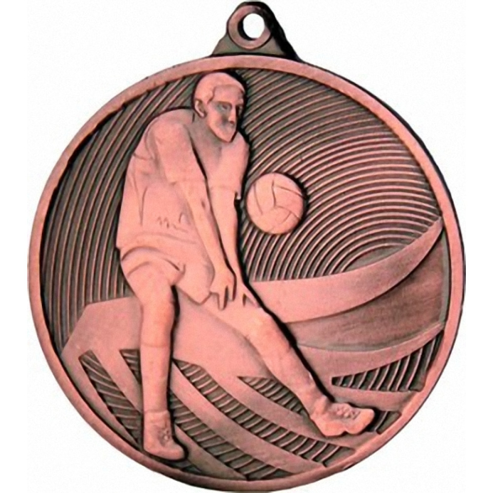 Медаль круглая металлическая. Диаметр 50 мм, толщина 2.5 мм.¶Цвет медали, имитирующий золото/серебро/бронзу.¶Сверху расположено круглое ушко для крепления ленты. ¶На аверсе медали нет места под вставку. ¶Фон медали представляет рельефную поверхность в виде мелких полос в форме полумесяца (верхняя часть медали) и 7 полос, оформленных в орнамент (нижняя часть медали). В центре медали изображен спортсмен - волейболист, принимающий мяч двумя руками снизу.¶На медали нет никаких других изображений и рисунков.