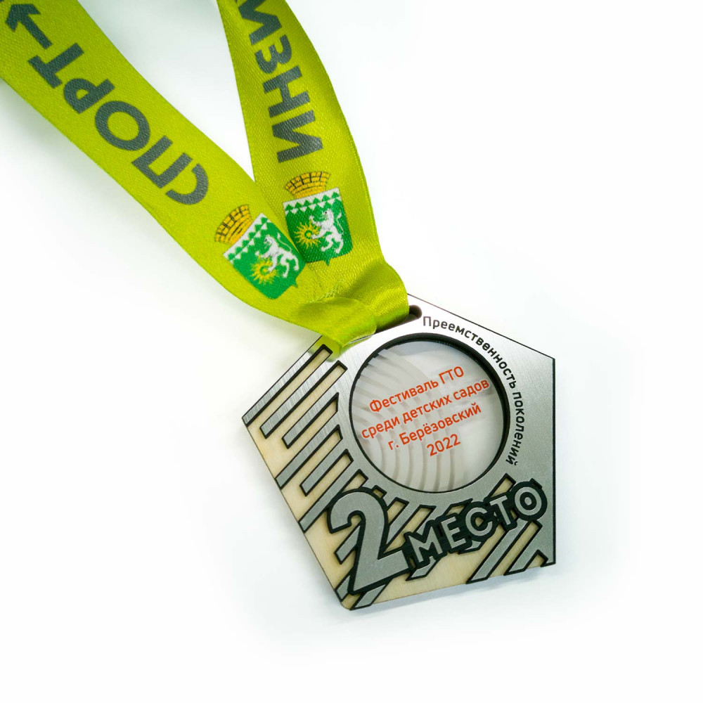 Параметры: Медаль из дерева с акрилом и пластиком 3-слойная, с УФ-печатью