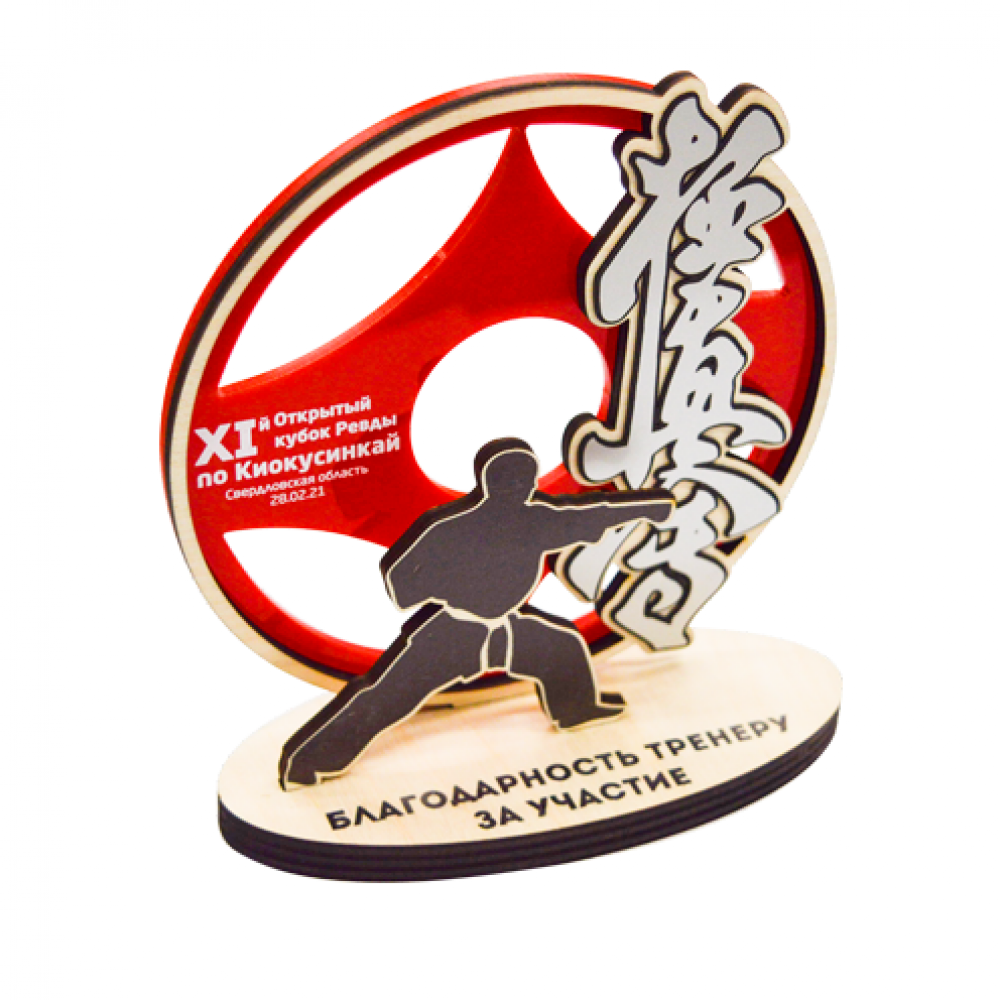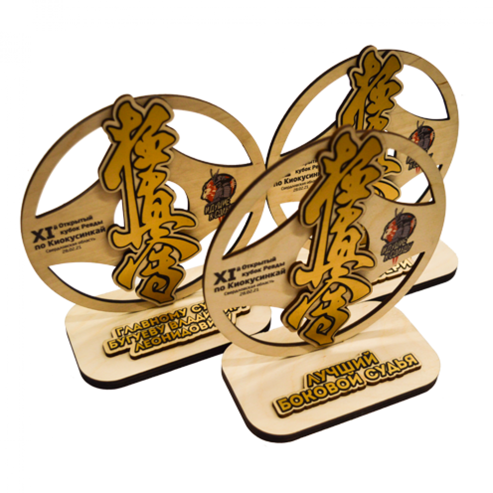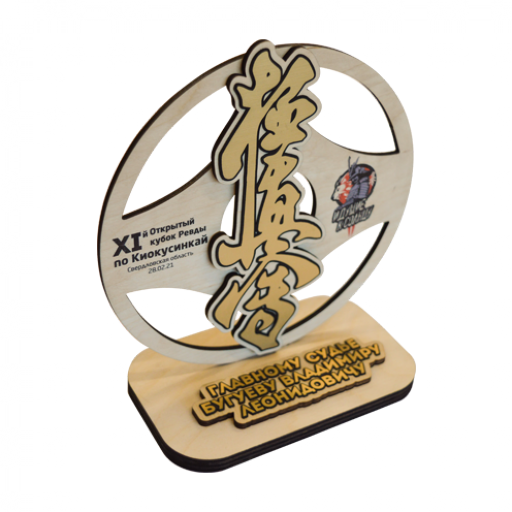 Приз из дерева (3-слойный) с пластиком, с УФ-печатью
