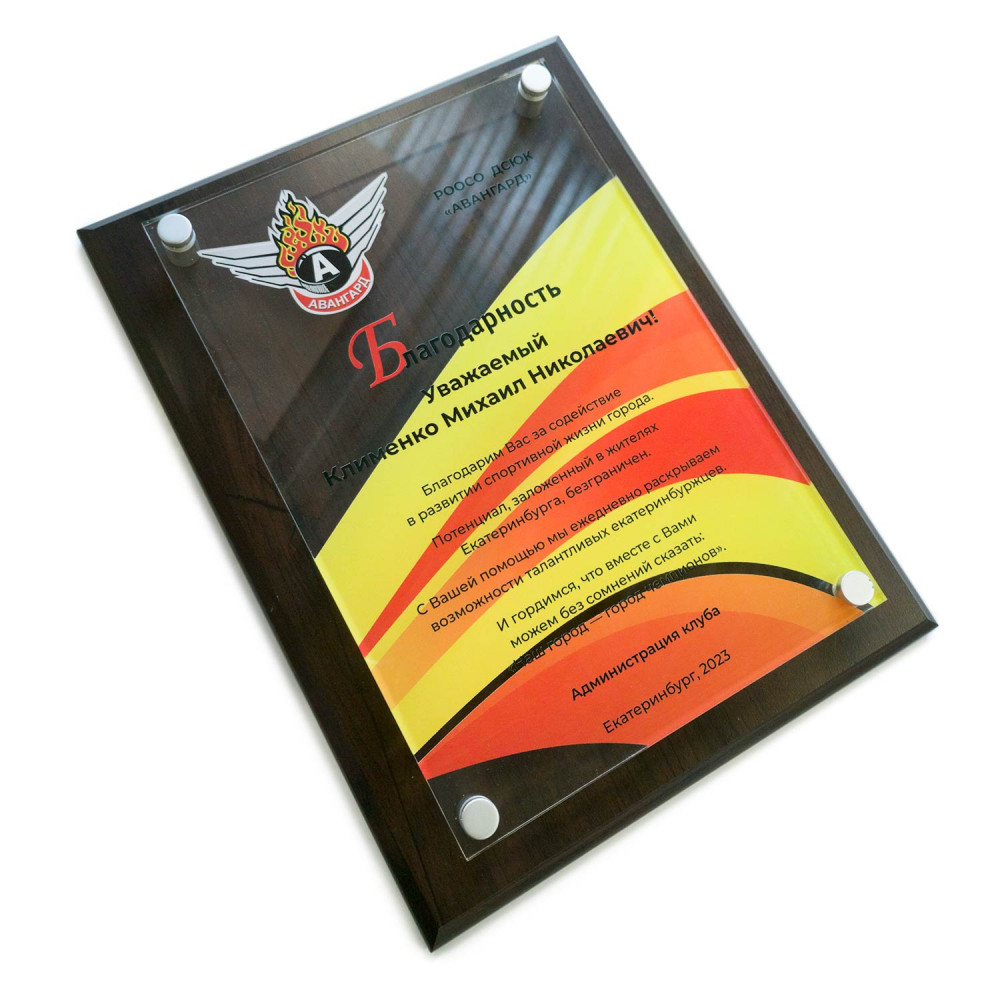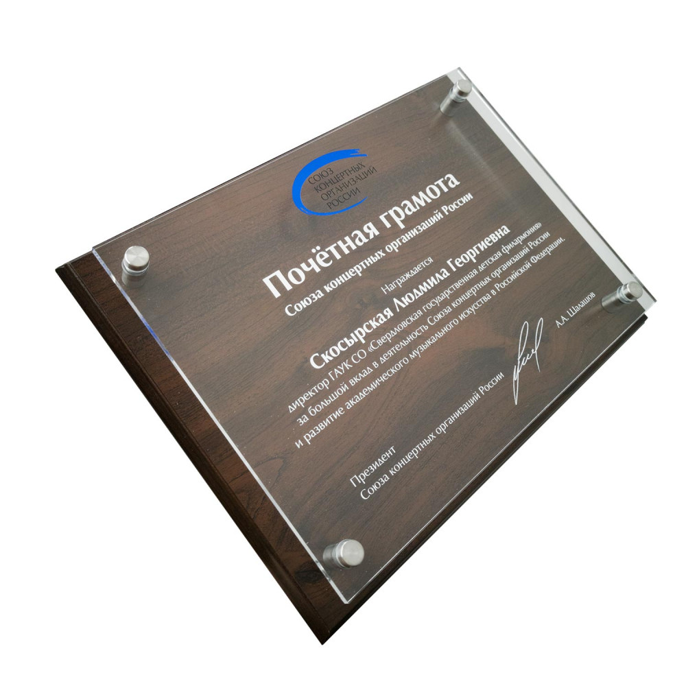 Параметры: Плакетка с декоративными элементами из акрила на дистанционных держателях, с УФ-печатью