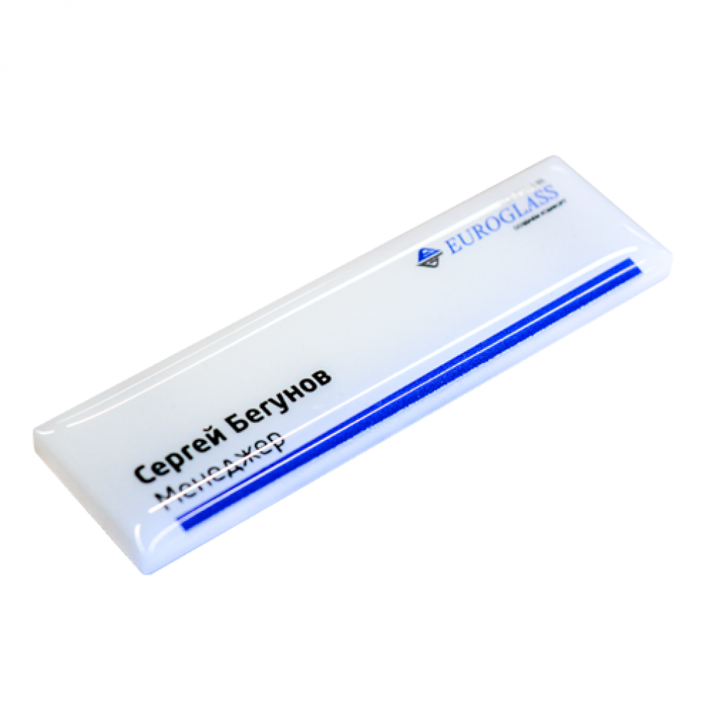 Материал - однослойный пластик белого или черного цвета, толщиной 0,8 – 1,6 мм. Это наиболее практичный для бейджа материал, стойкий к загрязнению, царапинам и воде.