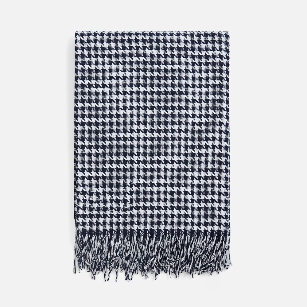 Графичный узор «гусиная лапка» (или «pied-de-poule») превращает изделие в изысканный интерьерный акцент, а бахрома добавляет ему элегантности и завершенности. Это воплощение безупречного вкуса и дань вневременной классике.