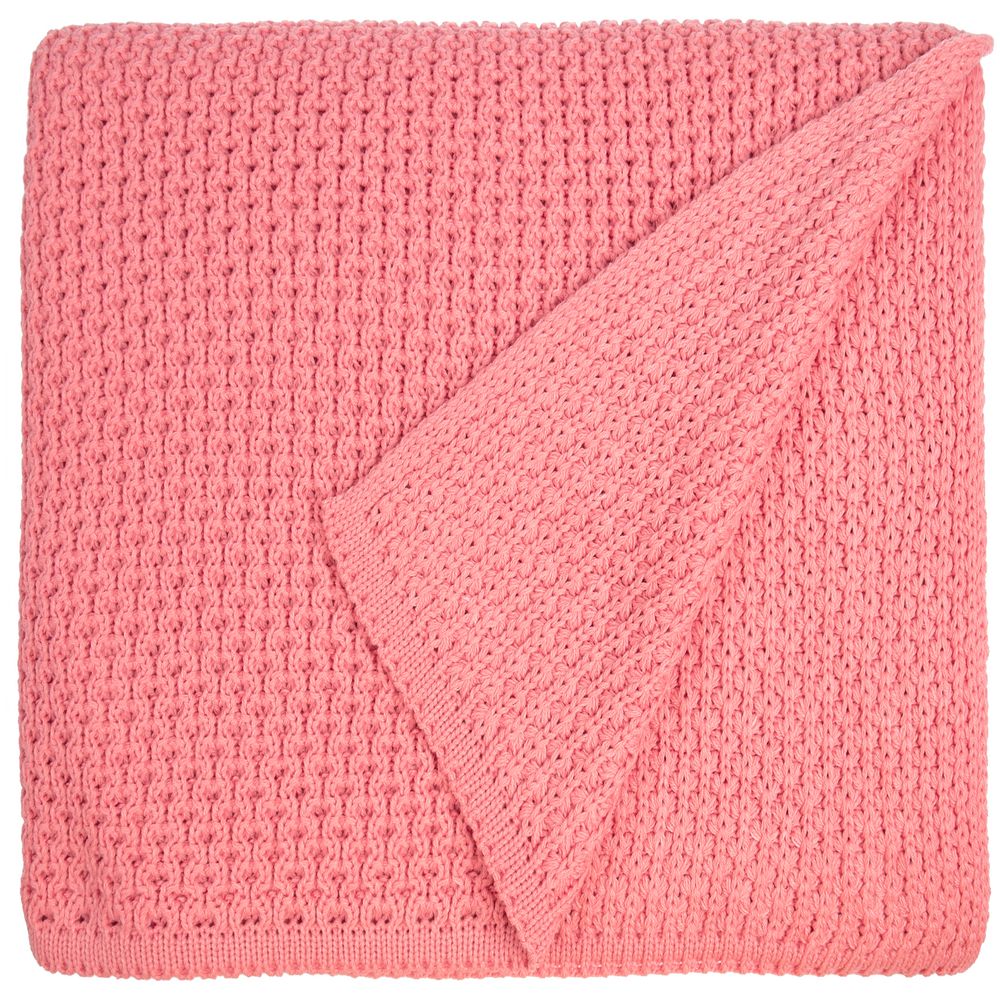 Модель: однотонный плед с фактурной вязкой, которая позволяет сделать его воздушным и объемным. Чередуя различные типы петель на гладком полотне, можно вывязать любую графику — логотип, текст, товарный знак.