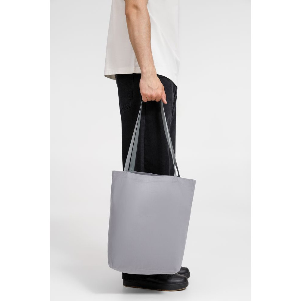 Базовый шопер разработан в рамках единой коллекции одежды и аксессуаров и легко комбинируется с ее элементами. Специально спроектированные лекала и технологии пошива открывают простор для любых вариантов кастомизации и нанесения изображений. На видимой части изделий нет лейблов с айдентикой бренда, а название бренда с уходника легко удалить.