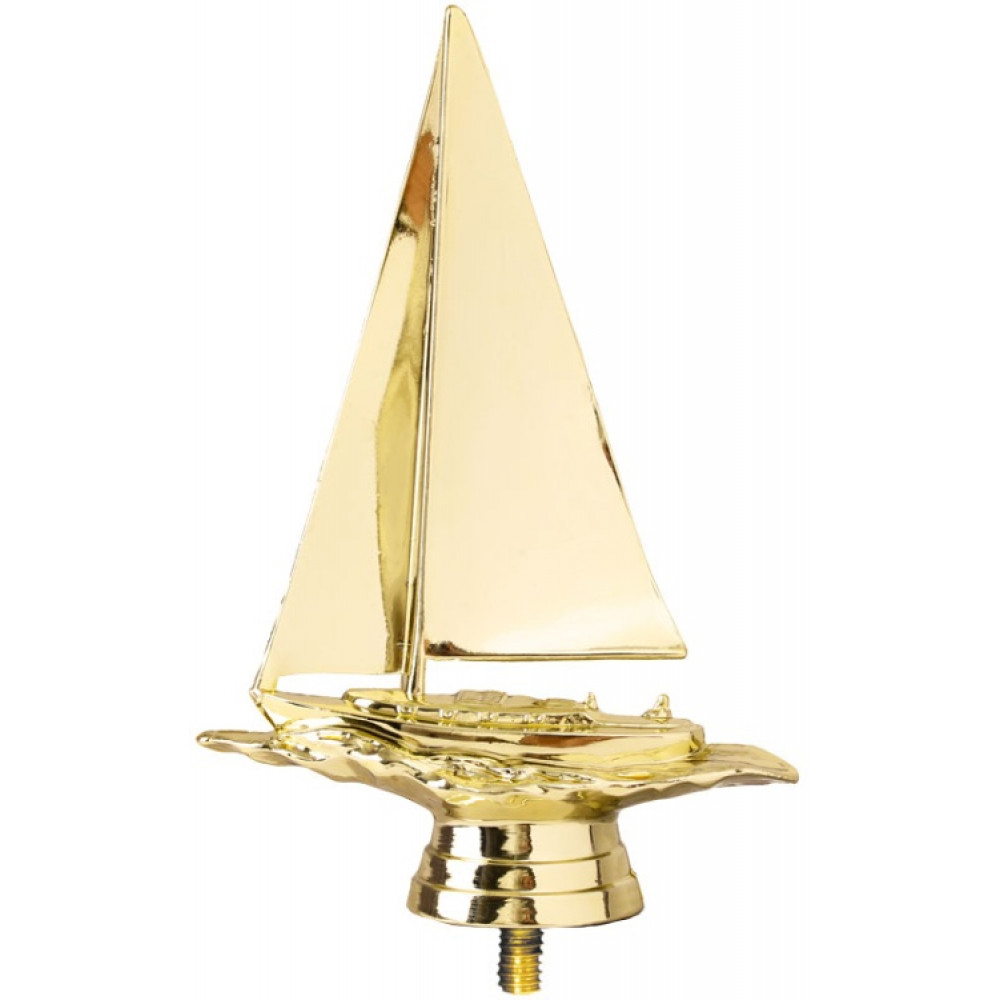 Цвет: золото, материал: пластик. Вид спорта: парусный спорт. Фигурка выполнена в виде яхты, дрейфующей по волнам океана. Паруса раздуваются из-за наполнившего их ветра и переливаются на свету. Ниже - круглое основание, на котором имеются горизонтальные линии. Высота, см: 14.6 Вес, кг: 0.045. Фигурку возможно закрепить на цоколь, постамент или кубок.
