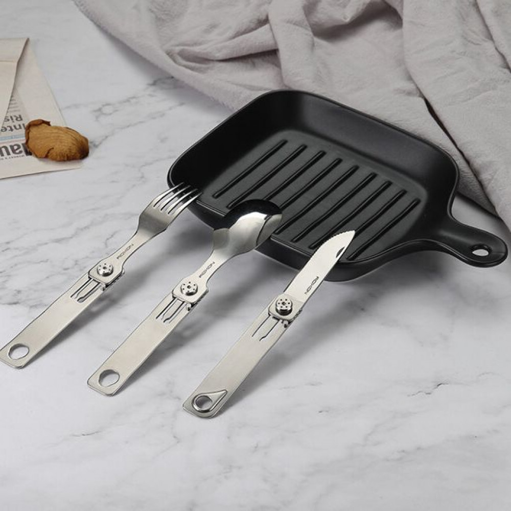 Набор столовых приборов C1 сделает туристические походы, пикники и другие занятия на свежем воздухе комфортнее. Ложка, вилка и нож легко складываются в компактную конструкцию для перевозки и раскладываются на три отдельных прибора — для использования по назначению.