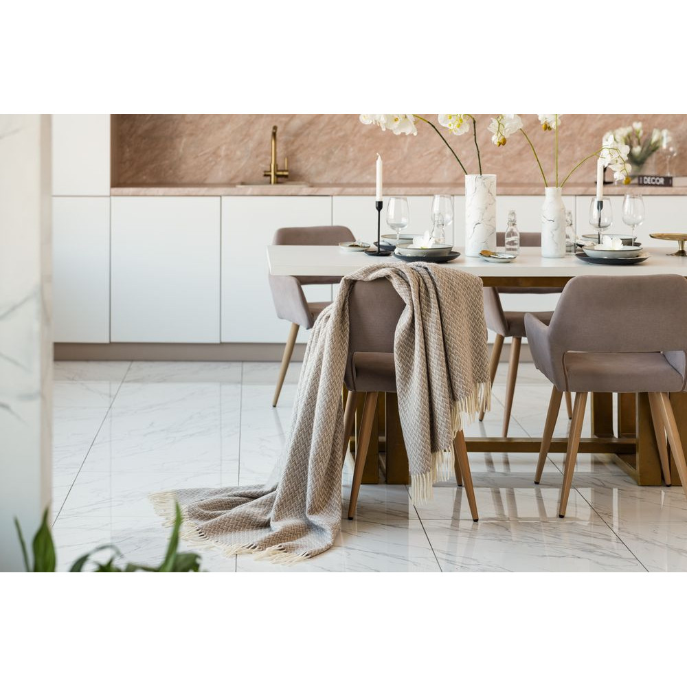 Плед с бахромой «Селигер» приглушенного пастельного оттенка из натуральной новозеландской шерсти — это возможность без лишнего пафоса пожелать процветания и благополучия своему деловому партнеру.