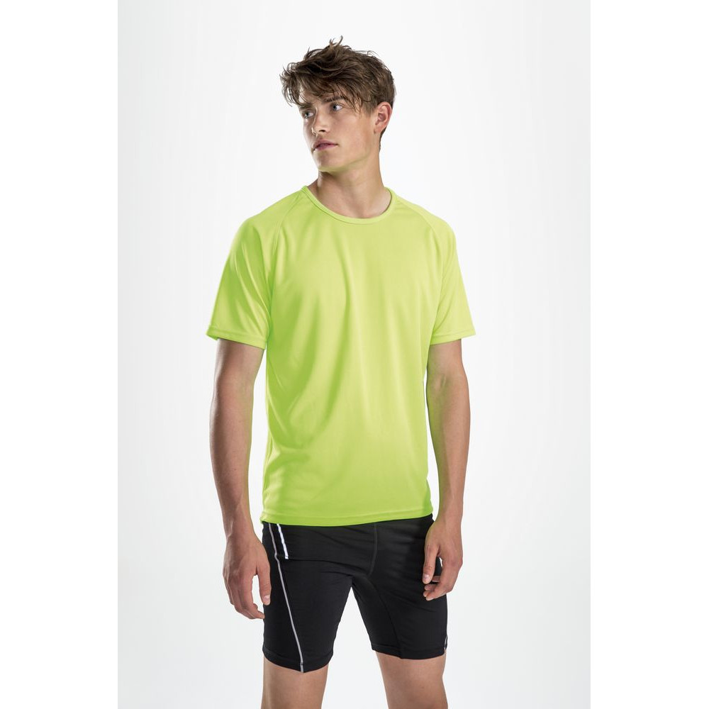 Футболка из спортивной сетки с рукавом реглан. Низ изделия и низ рукавов с двойной отстрочкой.