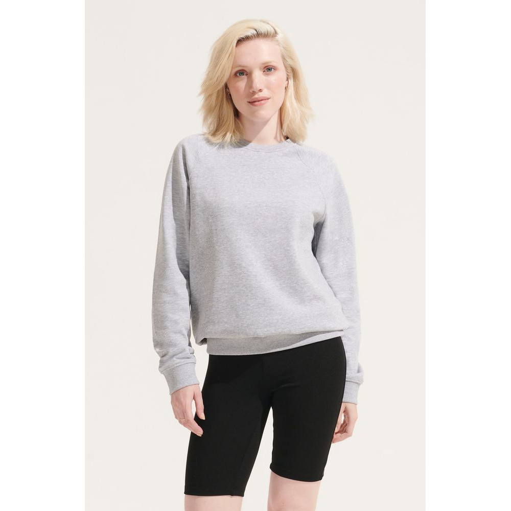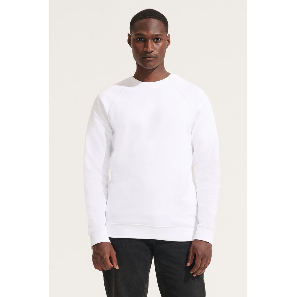 Свитшот унисекс из органического хлопка. Лейбл производителя в боковом шве изнутри, в шве горловины — только бирка с размером, что позволяет удобно нанести свой логотип.