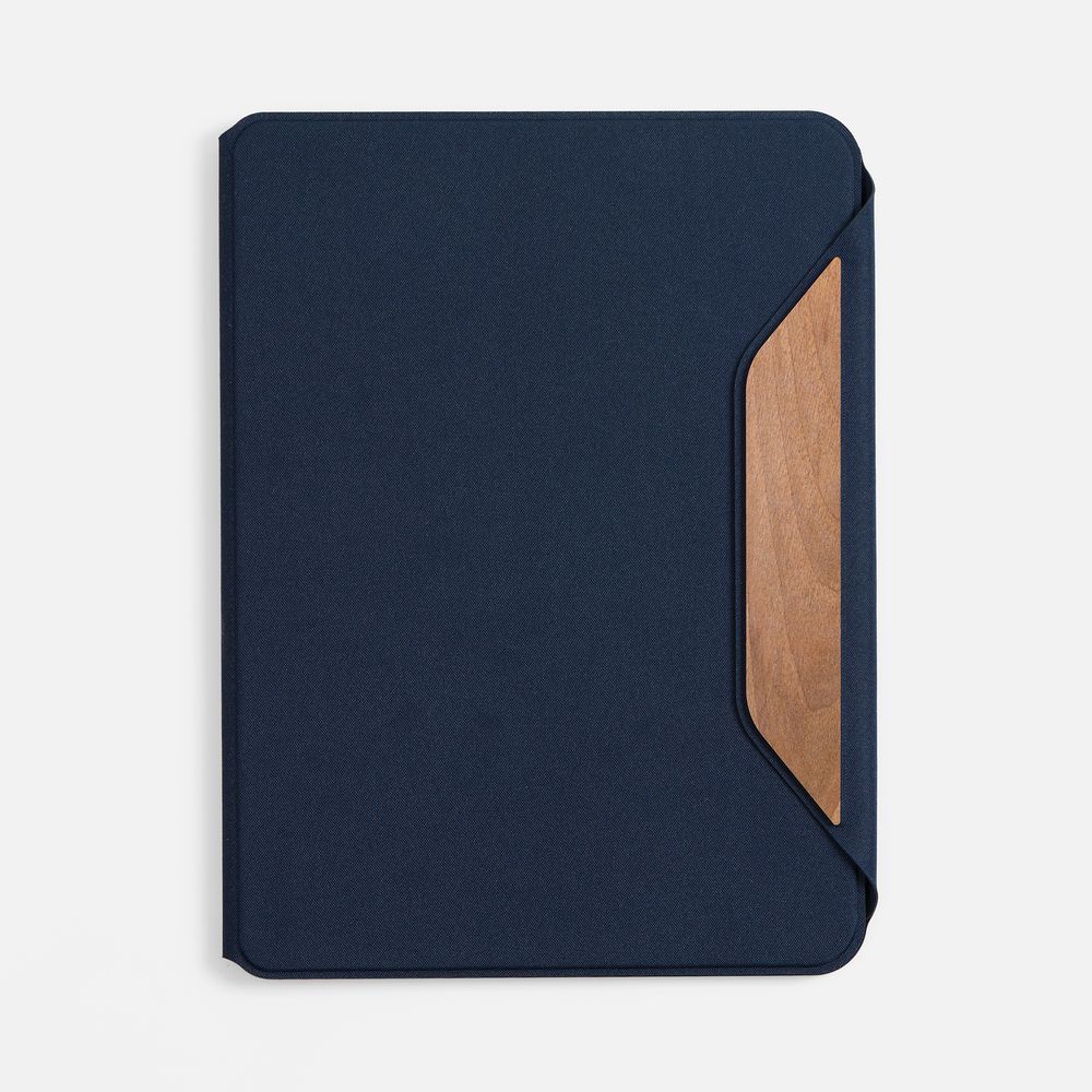 Обложка из ткани на магнитной застежке c деревянной шильдой: