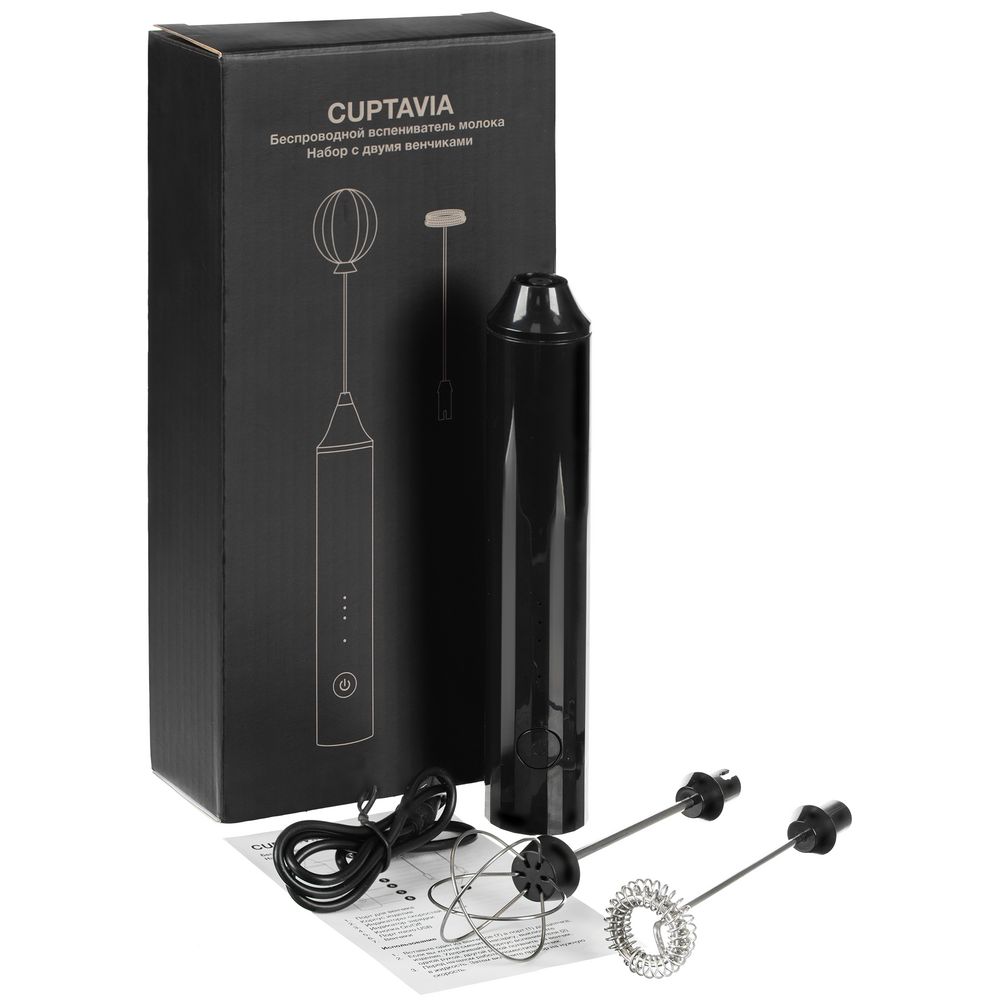 В комплекте: вспениватель, два съемных венчика, кабель, инструкция, фирменная коробка.