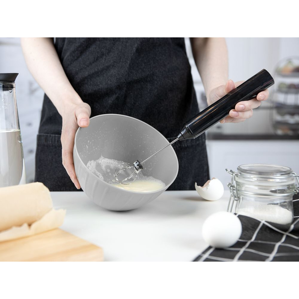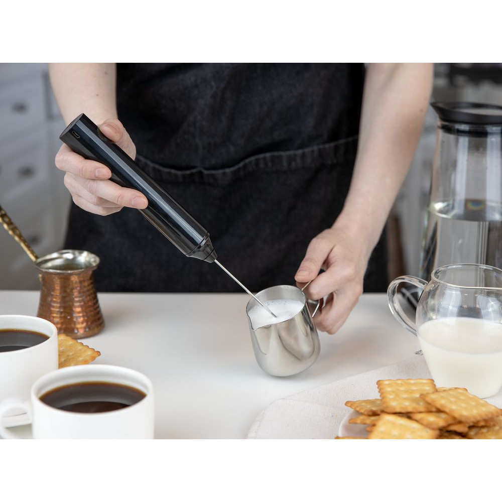 Беспроводной вспениватель молока Cuptavia сочетает в себе мощность, удобство и стильный дизайн. Два сменных венчика и три скорости работы делают этот прибор максимально универсальным и позволяют не только идеально взбить молоко для кофе плоским венчиком, но и с помощью круглой насадки приготовить простой завтрак, например, омлет или блинчики.