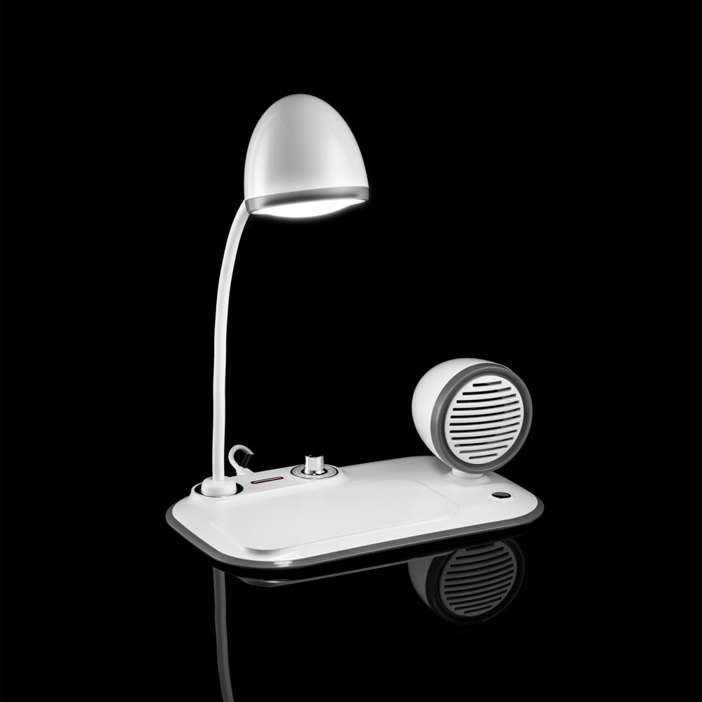 Устройство способно не только осветить рабочее пространство, помочь зарядить гаджет, но и удивить своим мультимедийным функционалом благодаря мощному динамику на 5 Вт. Мощности встроенной колонки хватает на то, чтобы заполнить звуком помещение до 25 м².