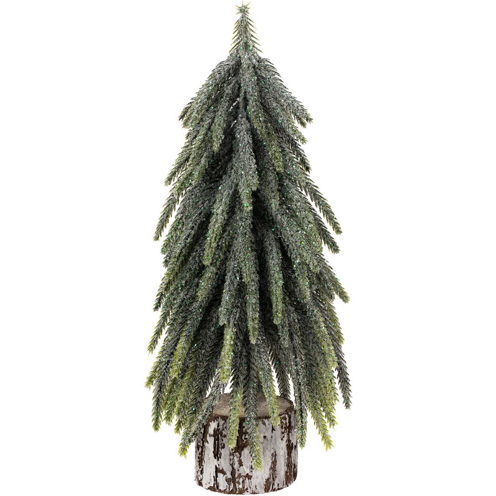Благодаря литым веточкам елочка выглядит очень естественно, а устойчивая деревянная подставка с эффектной фактурой добавляет всей композиции натуральности и органичности.