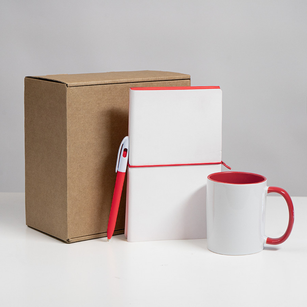 Параметры: Набор подарочный WHITE VEIL: блокнот, ручка, кружка; белый/красный