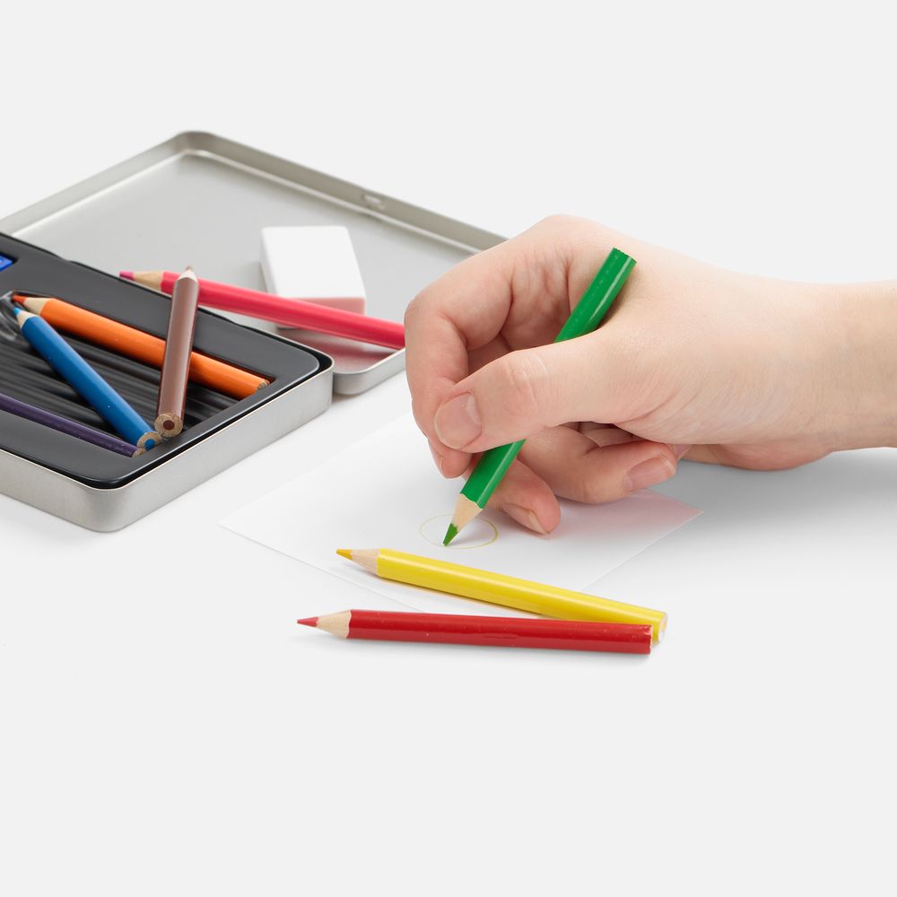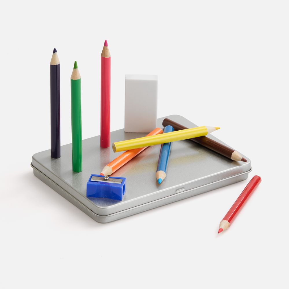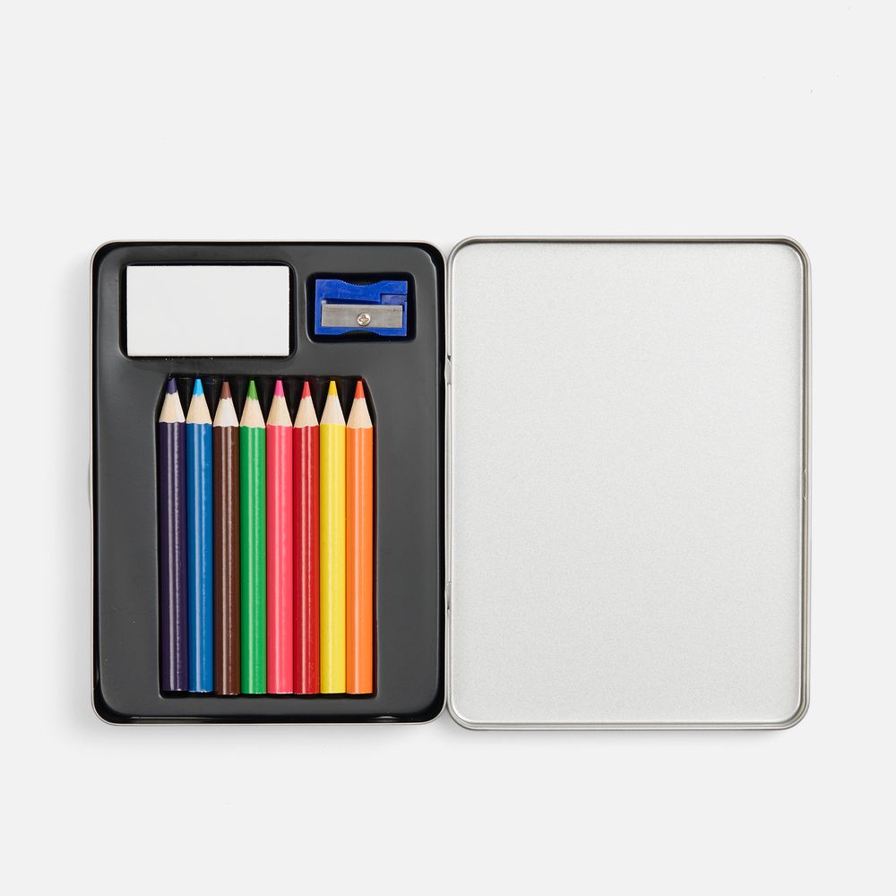 Набор из 8 цветных карандашей, ластика и точилки.