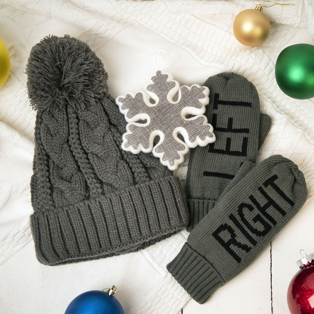 Параметры: Подарочный набор HUG: варежки, шапка, украшение новогоднее, серый
