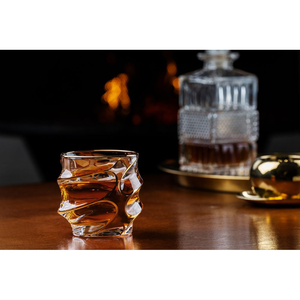 Стакан для виски Flexury — воплощение брутальной роскоши и серьезной основательности. Его необычные, словно позолоченные, изгибы будут игриво переливаться, поддерживая янтарный оттенок любимого напитка. Самое время задуматься об изменчивости жизни, замедлить время и насладиться драгоценным моментом!