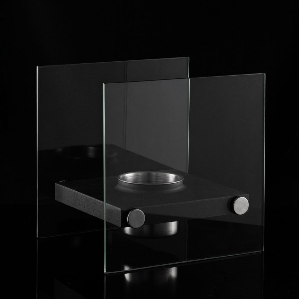 Комплектация: стальной очаг, 2 стеклянные защитные стенки, 2 стальные чаши для топлива,гаситель пламени, крепеж, инструкция.