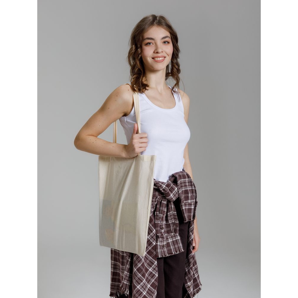 Классический шопер из переработанного хлопка. Неокрашенное полотно делает сумку настоящим универсальным холстом для логотипов и других маркетинговых сообщений.Способ обработки внутреннего шва: оверлок.