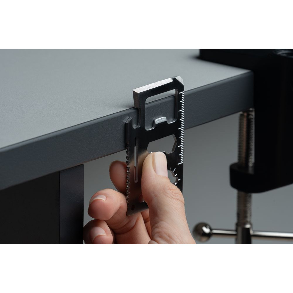 Суперкомпактный мультитул Dextro с 11 функциями будет всегда под рукой и выручит и в городе, и в лесу. По размеру он чуть больше привычной пластиковой карточки, но все еще помещается в карман сумки или в отделение для карт в портмоне. Чехол из искусственной кожи защищает окружающие предметы от повреждений, которые могут быть вызваны острыми краями мультитула.11 функций