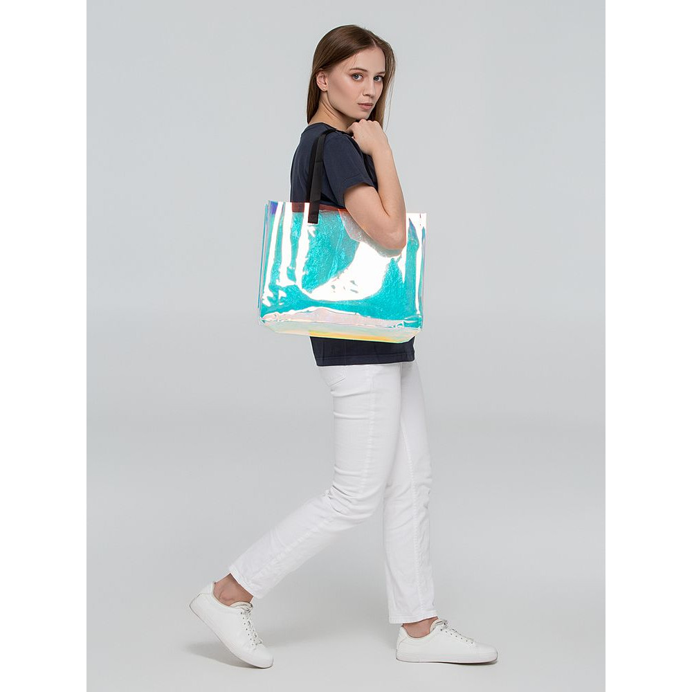 Полупрозрачная сумка с перламутрово-металлическим напылением, которое создает нежные переливчатые блики. С такой сумкой любой день будет казаться солнечным.