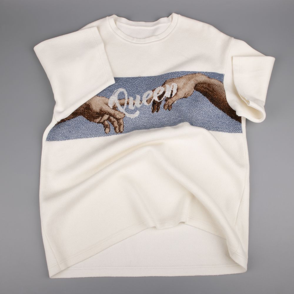 Модель: лонгслив унисекс жаккардовой вязки на спинке или полочке, мелкая петля, прямой силуэт, спущенное плечо, рукав втачной. Рукав может быть длинным или 3/4, стоимость не меняется.